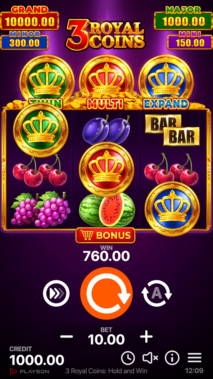 Luxury meets timeless slot charm in the explosive next instalment of our Royal Coins series, 3 Royal Coins: Hold and Win. Fans of the 3 Pots mechanic and Bonus Games can rejoice in a luxurious atmosphere with Special Coin Features, a 1,000 Grand Jackpot and Royal Coins symbols.