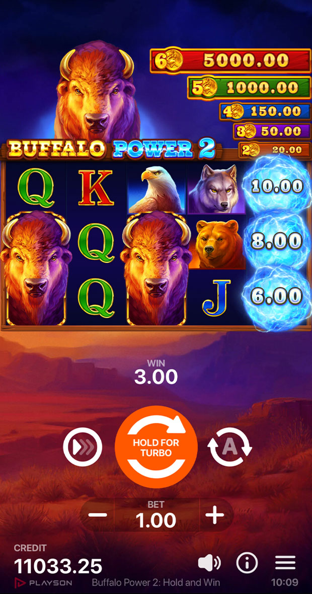With a maximum Jackpot of 5000x, "Buffalo Power 2: Hold and Win" promises an unforgettable gaming adventure and the chance to walk away with incredible rewards!