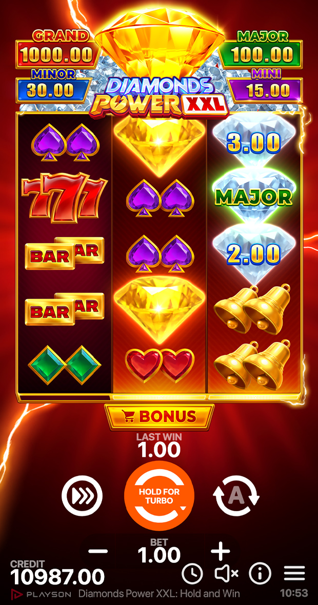 An exciting new chapter for our crystal-themed collection of slots is arriving soon with the release of Diamonds Power XXL: Hold and Win. An enlarged 3x5 grid takes this popular gameplay to the next level with even more chances to land Power Bonus symbols for bigger payouts.