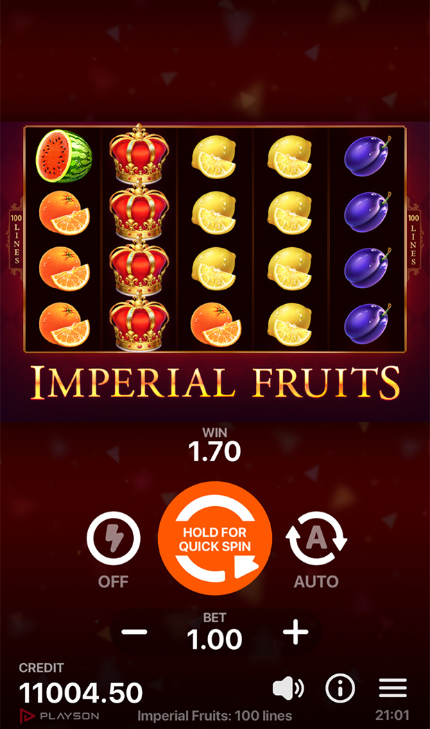 The slot has a 4x5 game field with fruits and Red Sevens as symbols with the highest payout.