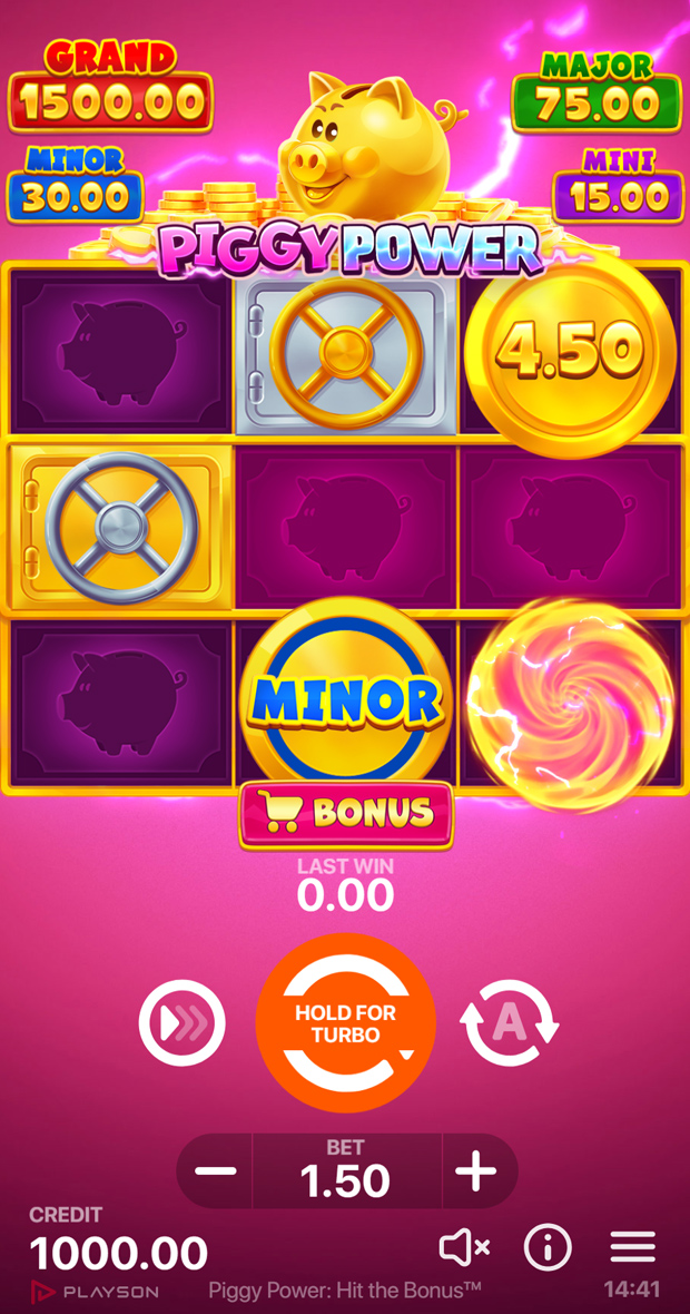 Keep an eye out for the exciting Piggy Multiplier. With the chance of randomly activating during either the Bonus or Power Bonus Game, the feature can gift up to nine multipliers per spin to random cells, increasing the chance of lavish wins.