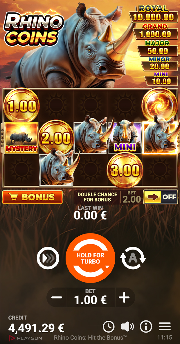 The Hit the Bonus™ series grows bolder with Rhino Coins: Hit the Bonus™ — a high-volatility release built around dual bonus modes, an expanded 5x5 Super Bonus field, five jackpot tiers and a series-first: six Buy Bonus options paired with a dedicated Extra Bet mode. Building on the strong appeal of successful titles like King of the Sky: Hit the Bonus™, this latest entry brings even more intensity and flexibility to the player experience.