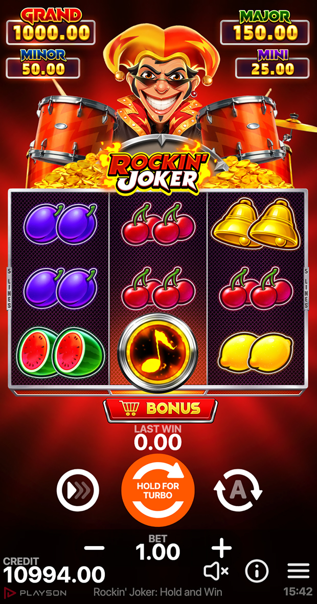 Get ready to crank up the volume in Rockin’ Joker: Hold and Win, our electric addition to the iconic Hold and Win series. The brand new Nudge feature ups the ante offering increased access to bonus play, while Joker’s Multipliers and Collect symbols ensure it’s a show not to be missed!