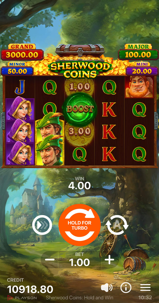 Join the forces of good with charming Robin Hood and his Merry Men seeking fortune deeply in the forest with a new immersive game by Playson! Sherwood Coins: Hold and Win is set on 5x4 reel grid with 25 win lines.