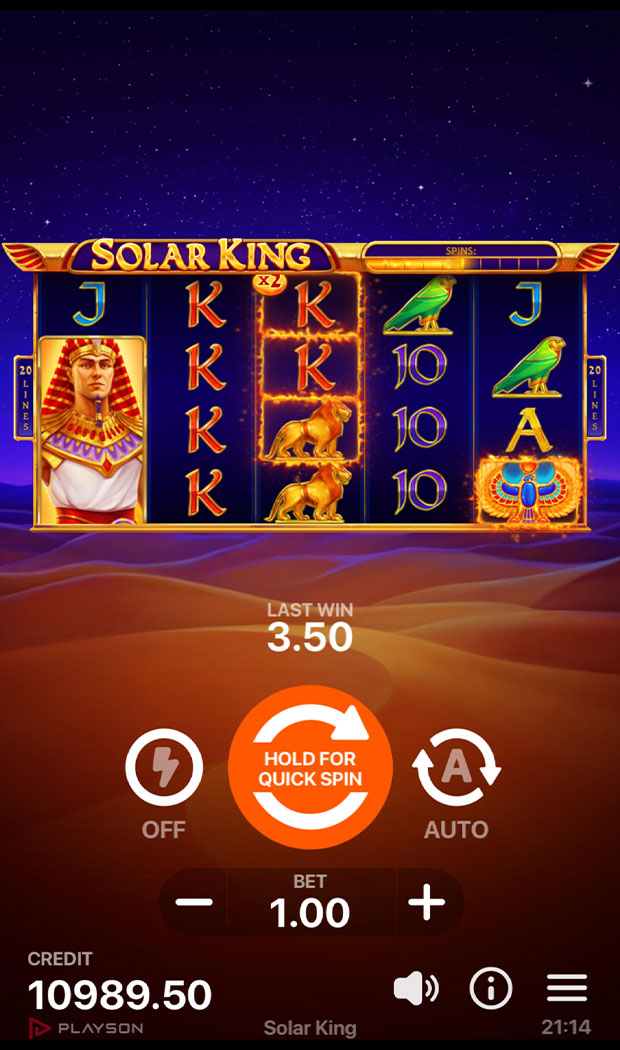 During Free Spins mode, the background shifts from the peaceful night desert to the giant devouring sunrise.