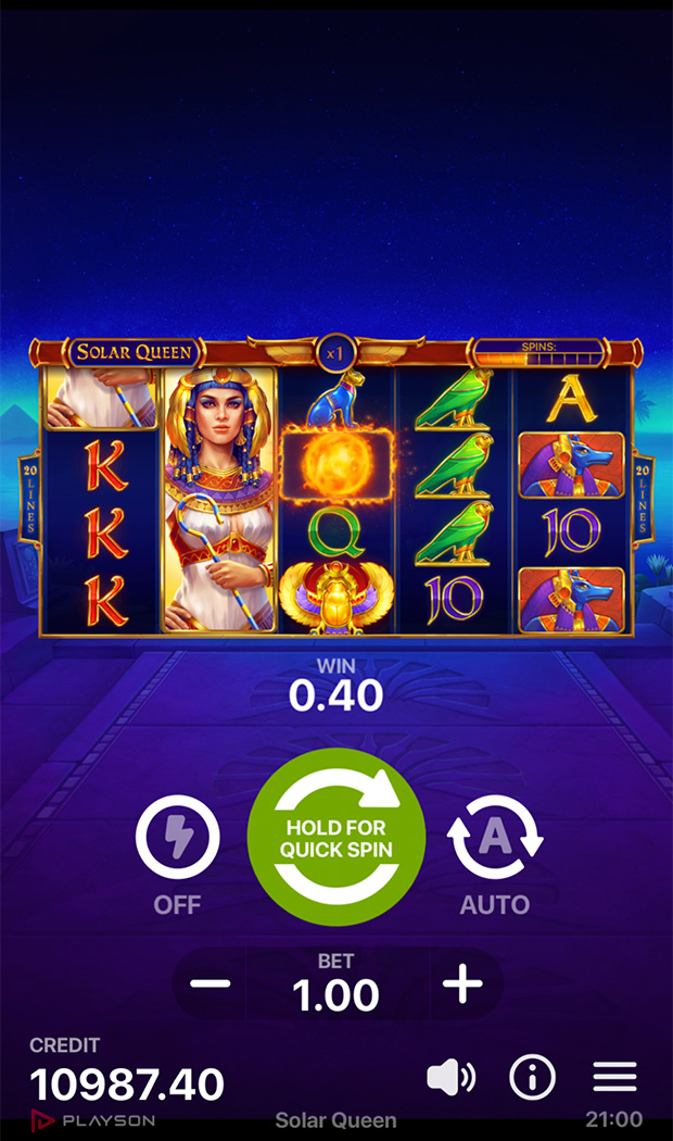 One has to land a bright Sun symbol to trigger the sequence of events for a 10-spin cycle.