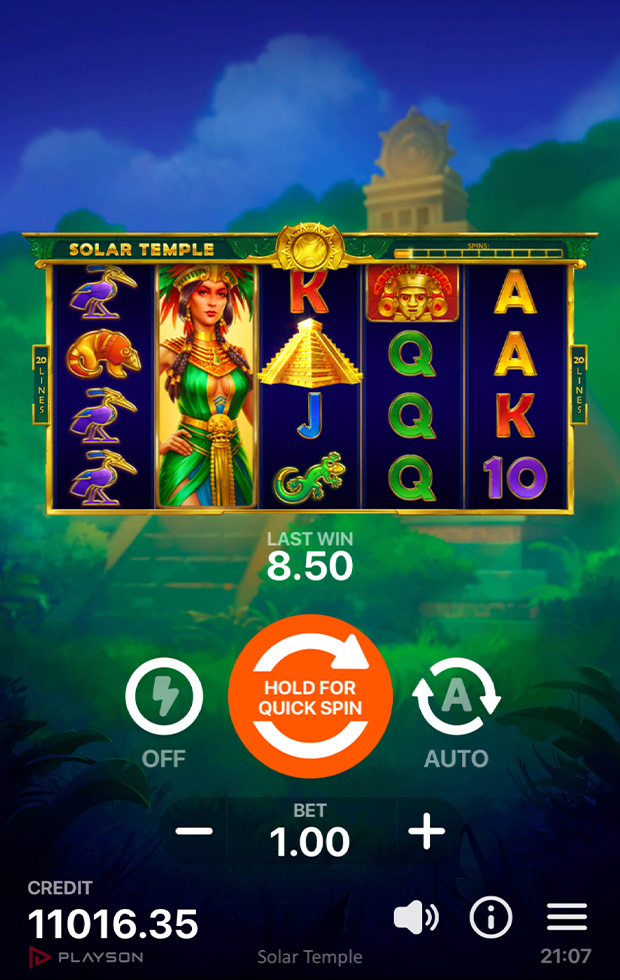 The Big Win animation is a golden rain of coins on the background of a vast blazing sun, which increases the effect of winning.