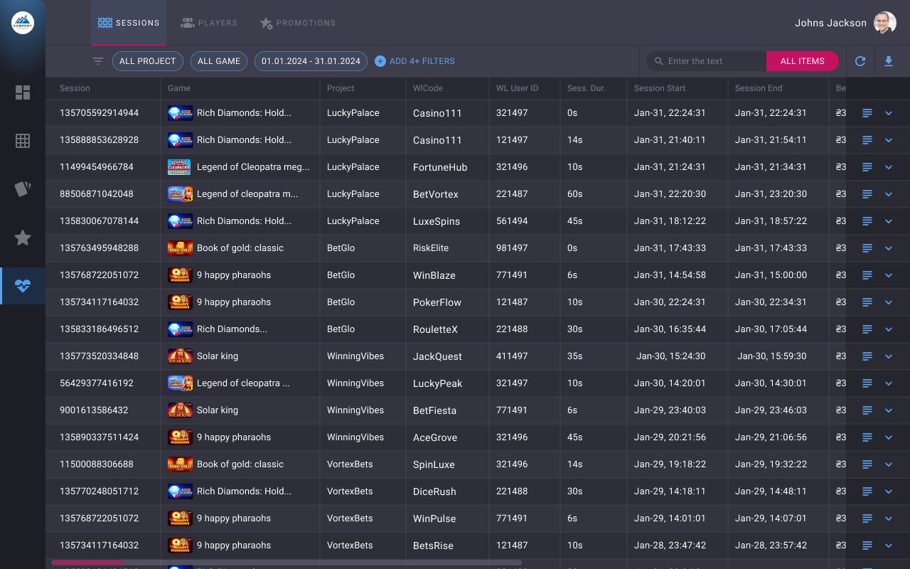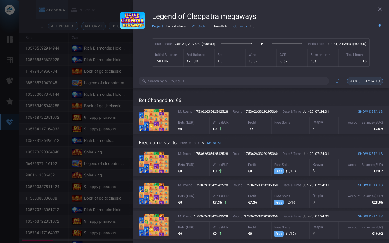 Evaluate player's loyalty and involvement due to the number of sessions and money spent, and make sure everything is risk-free